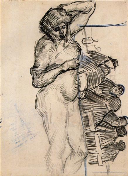 Vincent van Gogh, Dying Slave and Figures at a Table, 1887, pencil, pen and ink, chalk, on paper, 34.8 x 25.8 cm, Van Gogh Museum, Amsterdam, Netherlands.